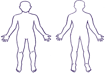 Use the diagram below and get your child to show you where their pain is. Record the location of the pain in their Crisis Diary