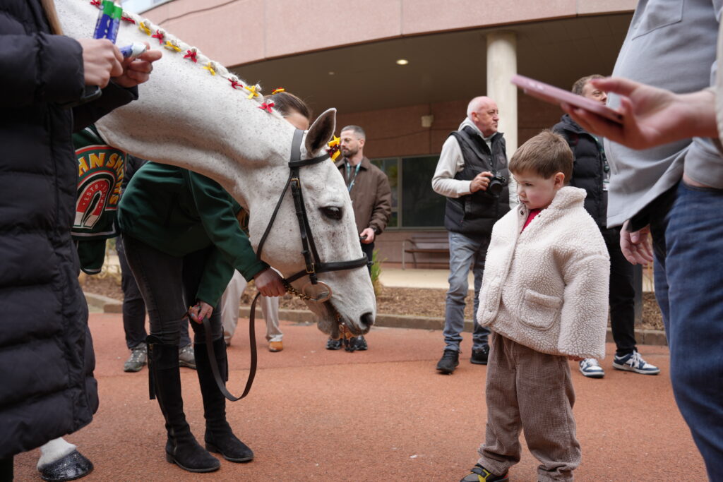 Oliver Christie, who this year will be the Jockey Club’s honorary 35th runner of this year’s Grand National, also got the chance to meet Neptune. Oliver has undergone five open heart surgeries at Alder Hey, and he is currently an Alder Hey outpatient after he underwent his fifth open heart surgery operation on March 9th, before being discharged last week.