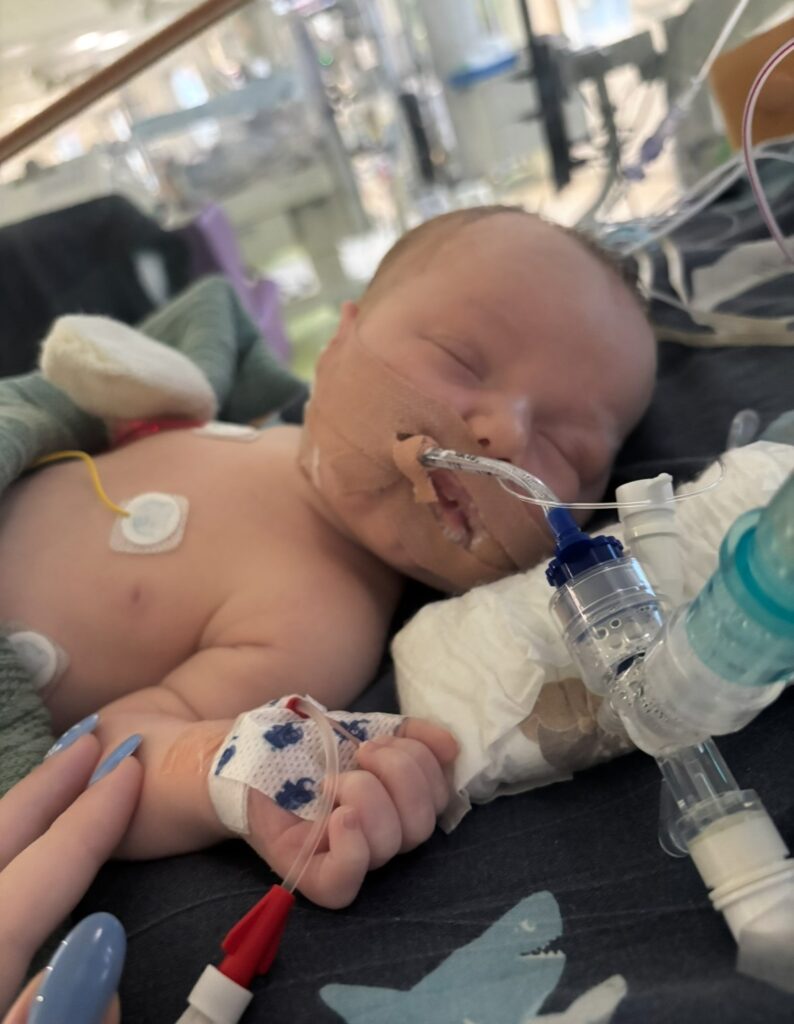 Eden was diagnosed with Congenital Pulmonary Airway Malformation (CPAM) at 32 weeks into his mum Hayley’s pregnancy. CPAM is a rare condition that affects how a baby’s lungs develop before birth, leading to abnormal cysts or tissue forming in part of the lung. These changes can make breathing difficult after delivery. As a result, Eden was born at Liverpool Women’s Hospital with a specialist team on hand to support his breathing.